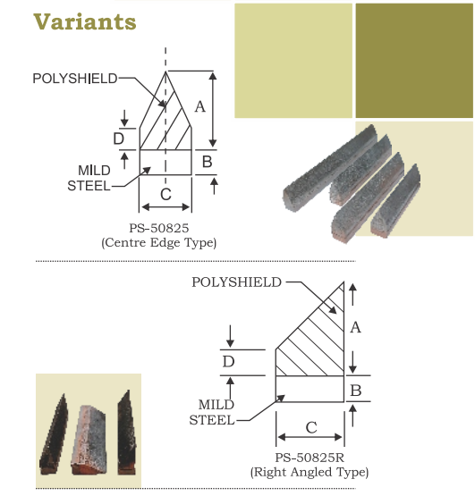 POLYSHIELD Knifes Edges have now mostly replaced the conventional hardfaced knives due to their versatility. The abrasion & impact resistant properties of POLYSHIELD Knife edges provides.