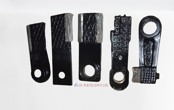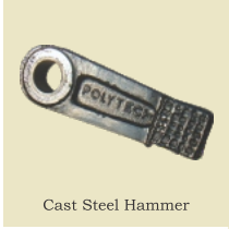 We manufacture a wide range of Swing type hammers suitable for heavy duty shredding equipments viz. Shredder / Unigrator / Mincer / Fibrizer suitable for Walkers, Tongaat, Fives Cail, F & S, Krupp, Unice etc. for effective cane preparation. Use of quality & tested raw-materials, special hardfacing alloys, excellent workmanship has made our make hammers widely acceptable in the domestic & overseas markets. The crushing head of the hammer is either fitted with POLYSHIELD Detachable Tip or is heavily hardfaced with Chromium Carbide Electrode.